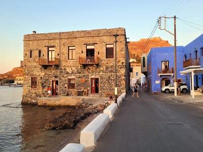 Některé budovy na ostrově jsou postaveny v italském stylu z dob italské okupace. Italové zde také postavili město Laki, kde jsou netypicky široké ulice. Jde o hlavní přístav ostrova v téměř uzavřeném zálivu.