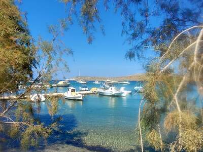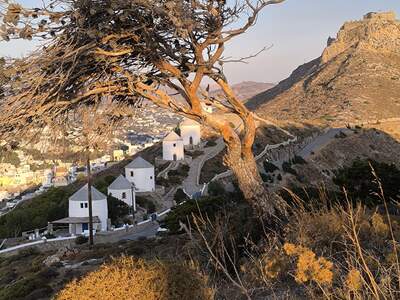 Větším letoviskem, a i přístavem je Agia Marina ležící ve svahu. Nad uličkami s bílými domy dominují pozůstatky byzantského hradu a obvodové městské hradby. Ke hradu vede silnice, kterou lemují větrné mlýny. Na toto letovisko navazuje oblast známá Crithoni.