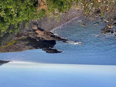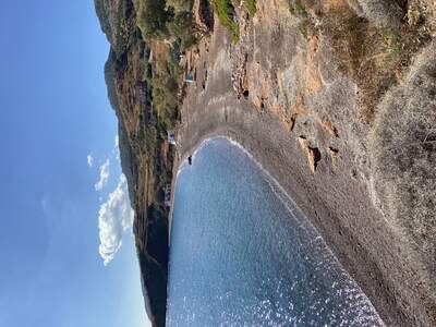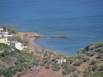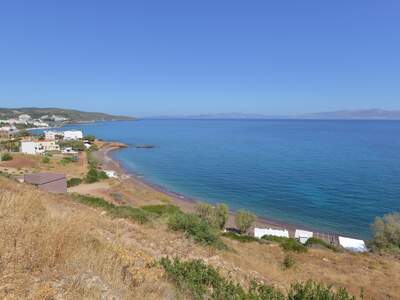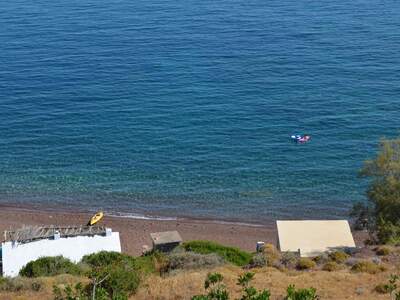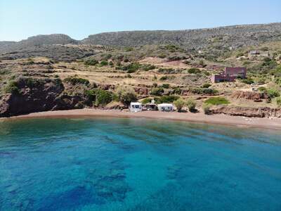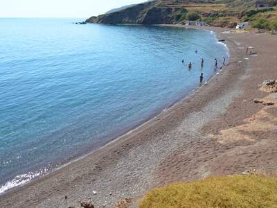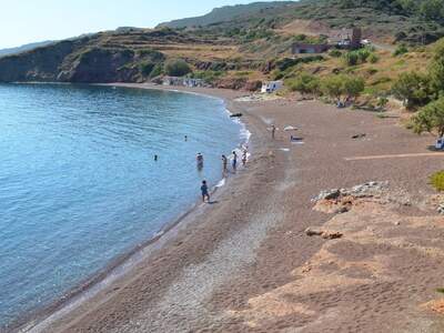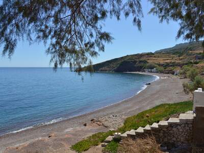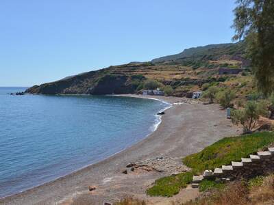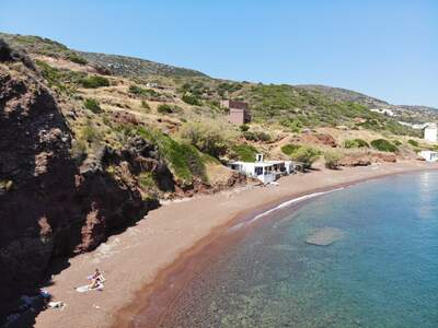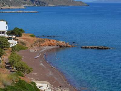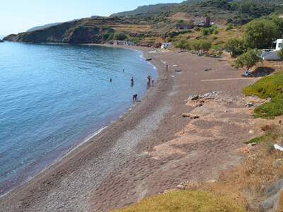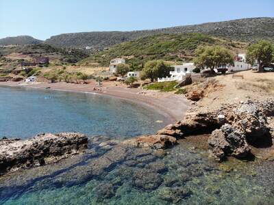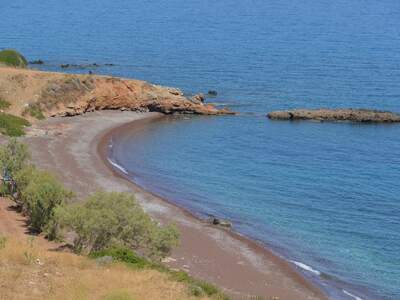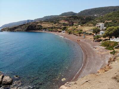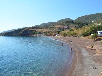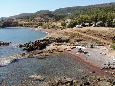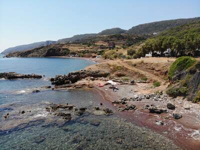 Pláž Firi Ammos s červenými oblázky leží jižněji od Agia Pelagia, vede k ní asfaltová a štěrková cesta.