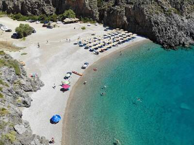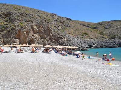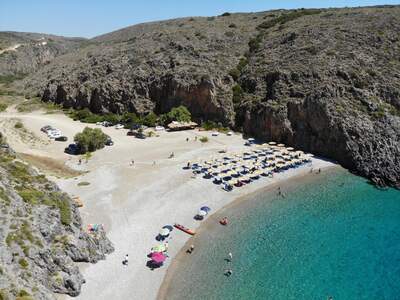 Pláž Chalkos vzdálená asi 8 km od Chory leží v zálivu, který z obou stran obklopují skály. Je pokrytá světlými oblázky a bývá tu dost větrno. V sezoně je organizovaná a funguje na ní plážový bar.