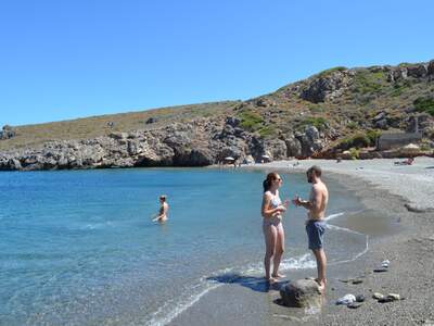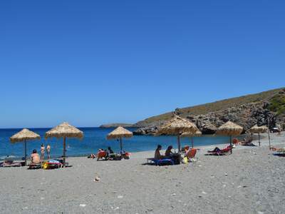 K pláži Fourni na severovýchodě ostrova vede štěrková cesta z Karavasu či z Platia Ammos. Pláž je ukrytá v málem zálivu a je oblázková.