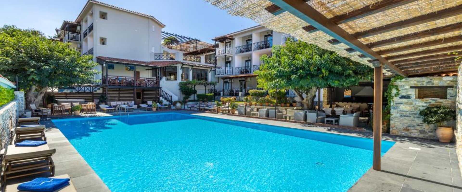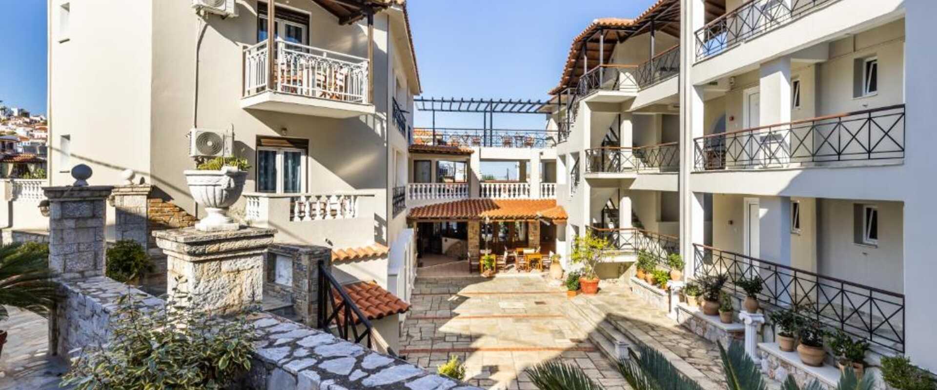 Hotel se nachází v malebném centru města Skopelos, pouhých 150 metrů od přístavu – ideální pro procházky do místních kaváren, restaurací i obchodů. Je to totiž ideální výchozí bod pro poznávání města bez nutnosti auta. Hotel se nachází v blízkosti autobusové zastávky a od nejbližší městské pláže leží 550m.
